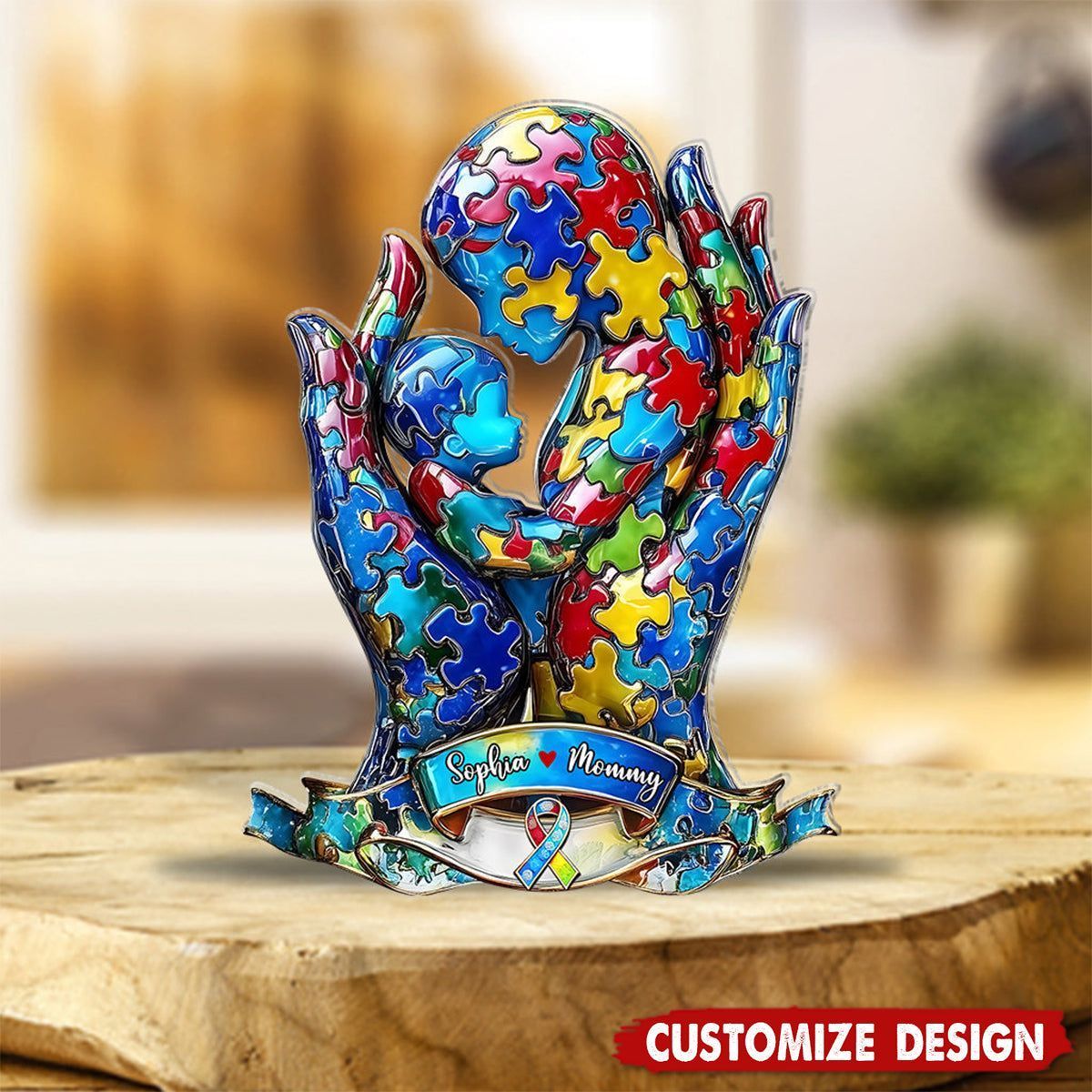 • 1 x Mom And Kid - Personalized Autism Awareness Shaped Acrylic Plaque