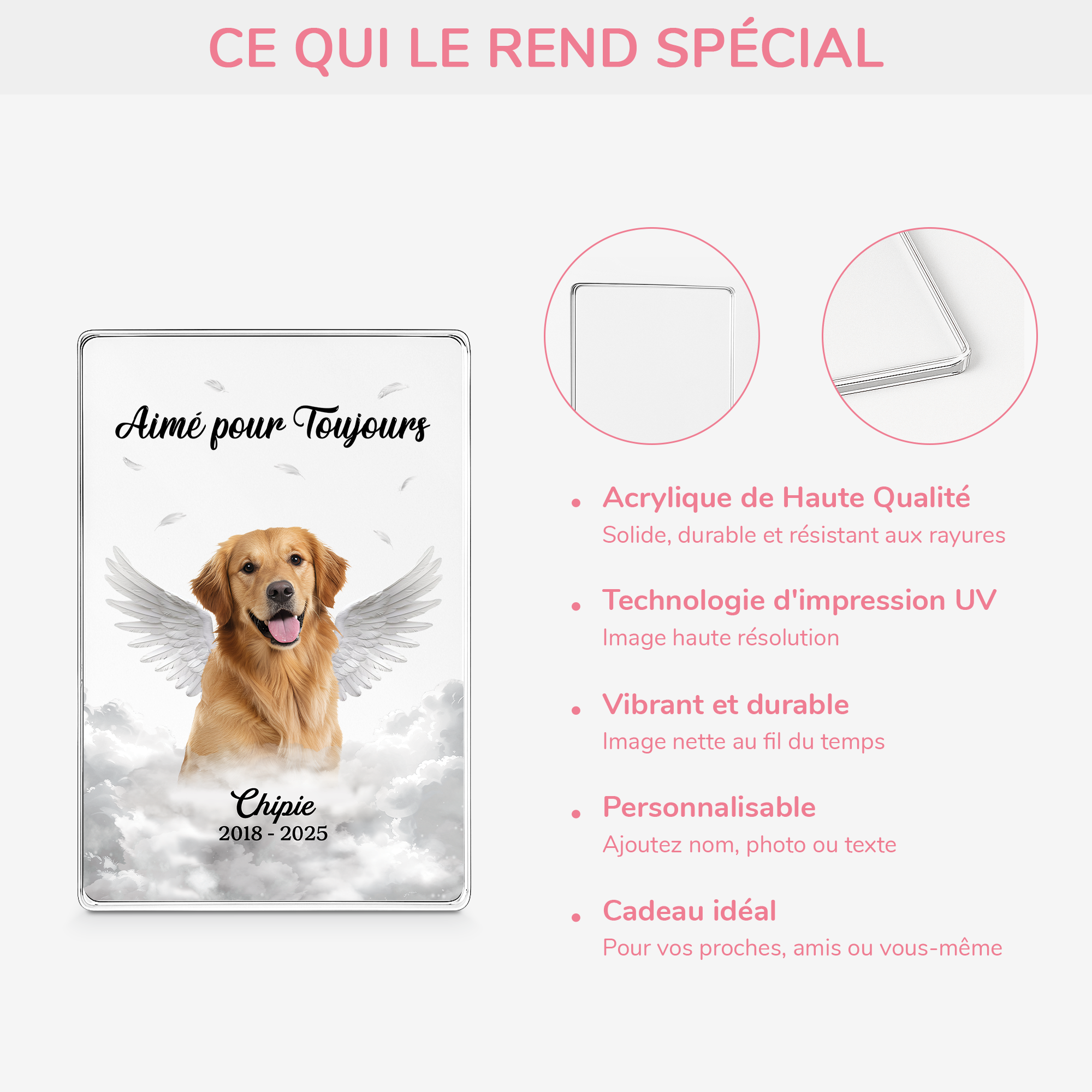 Offer a lasting tribute to your faithful companion with our Personalized Pet Memorial Block. Carefully and elegantly designed, this clear acrylic block showcases a personalized photo of your pet with the inscription "Loved Forever," as well as their life dates to treasure their memory.